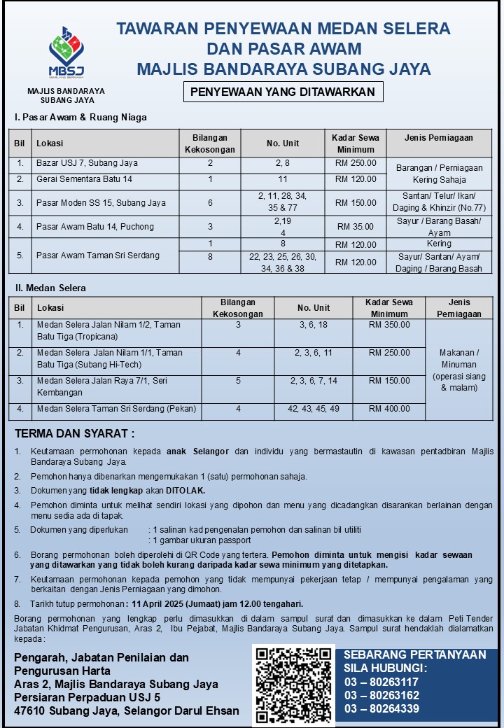 Tawaran Penyewaan Medan Selera Dan Pasar Awam MBSJ 2025